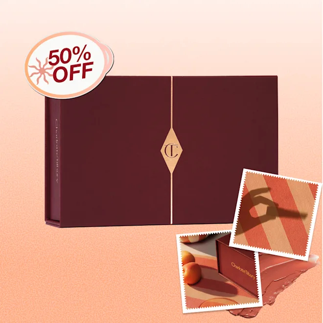 Charlotte Tilbury Mystery Box Cheeky Peach (worth £103.00). Priced at £51. The box features 4 makeup + skincare products for a cheeky, peachy summer look.