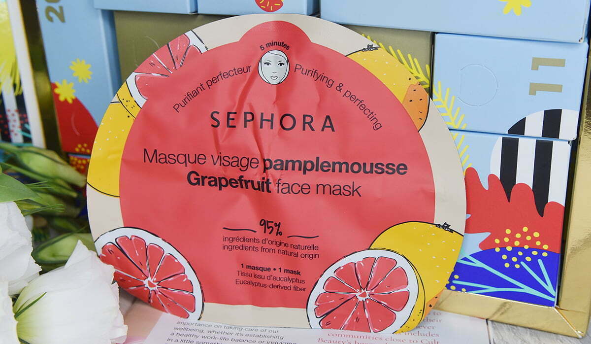 Sephora Collection Grapefruit face mask (worth £3.99) – a single-use face mask to moisturise, boost radiance, soothe, treat blemishes, purify the skin. The formula is enriched with moringa extract, wood apple extract, grapefruit extract, and hyaluronic acid.